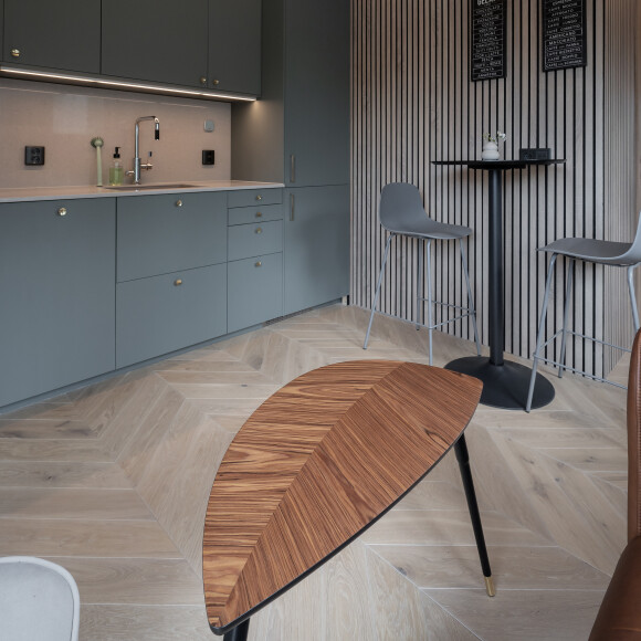ProjektbeskrivningI detta Attefallshus på vackra Ekerö har Nockeby Parkett installerat Chevronparkett.