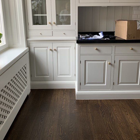 I detta vackra hus i Danderyd fick vi uppdraget att slipa om trä golven. Beställaren önskade en mörkare ton som framhävde ådringen i träet.